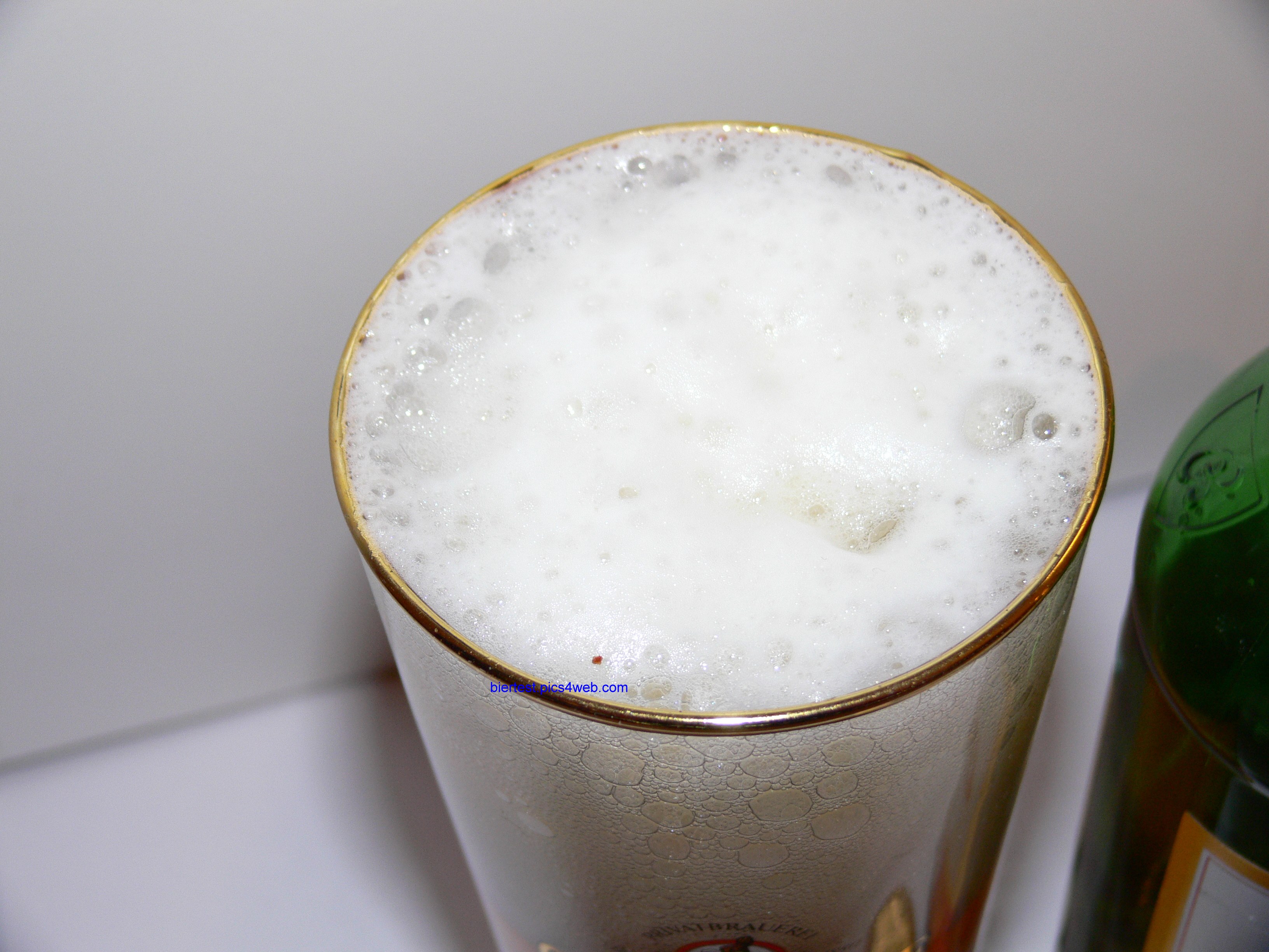 Geruch: leicht seifig, irgendwie chemisch. Farblich gesehen kommt der Tscheche normal gelblich daher, Tendenz hin zum dunkleren gelb. Die Schaumkrone steht schnell und eher grobporig, hält jedoch nur mittelmäßig lange. Möchte cremig wirken und tut dies auch eine kurze Zeit lang. Wenig Kohlensäure.