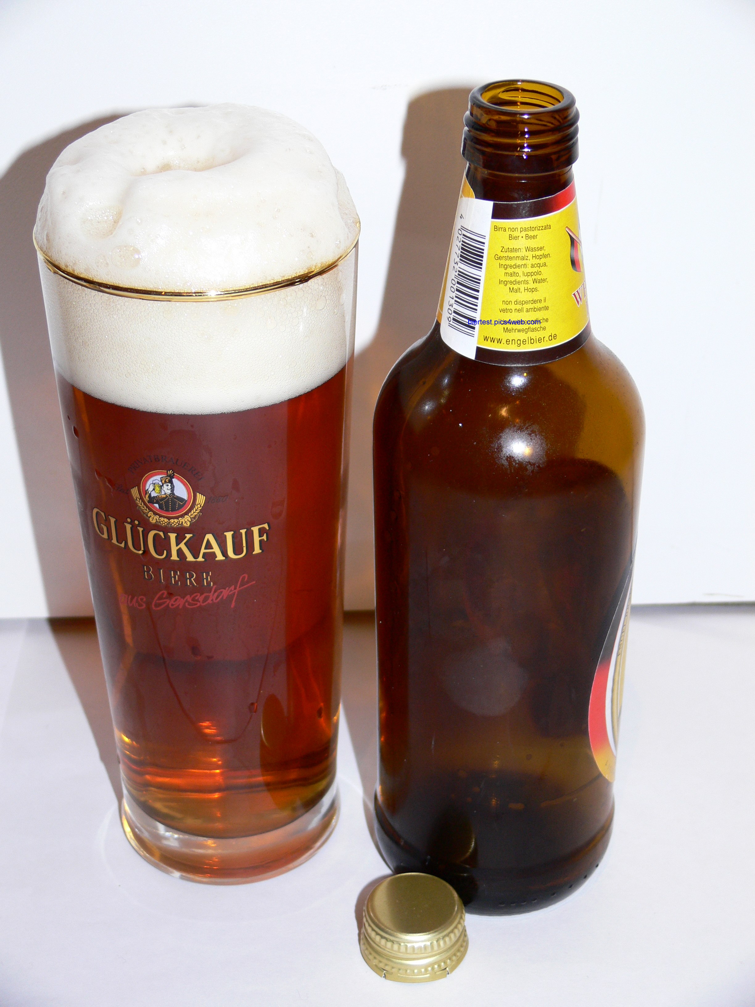 Im Antrunk kommt dieser Engel malzbetont daher, würzt den Geschmack im Mittelteil noch ein wenig durch, untermalt ihn ferner leicht süß. Im Abgang herber (der Hopfen kommt durch), jedoch am Gaumen auch leicht klebrig, das Malz gewinnt letztendlich die Schlacht. Herbsüßer Nachhall als Gemisch gesehen. Ganz nett der Kram - wenn das Zeug dann auch in das Weltmeisterland exportiert wird... Halleluja.