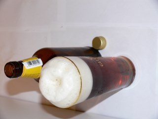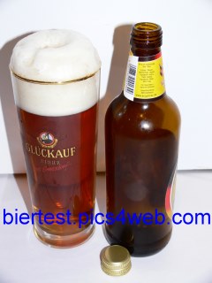Geruch: würzig, im Glas leicht brotig. Dunkelgoldene Färbung des Bieres, leichte schwach aufsteigende Kohlensäure inklusive. Der Schaum wirkt feinporig, schön cremig und besitzt die gewisse Steifigkeit, um die Krone schön über den Glasrand anzuheben.