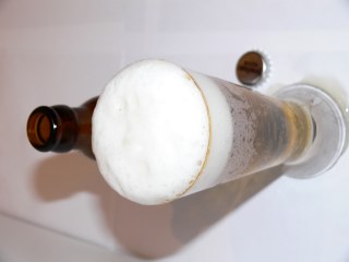 Geruch: nach Getreide und leicht nach Hopfen. Farblich etwas blass, jedoch noch OK. Kohlensäurelastig. Entprechend hält die Krone auch recht lange, sie wirkt außerdem cremig und feinporig. Schön. Nun gehts ans Eingemachte.