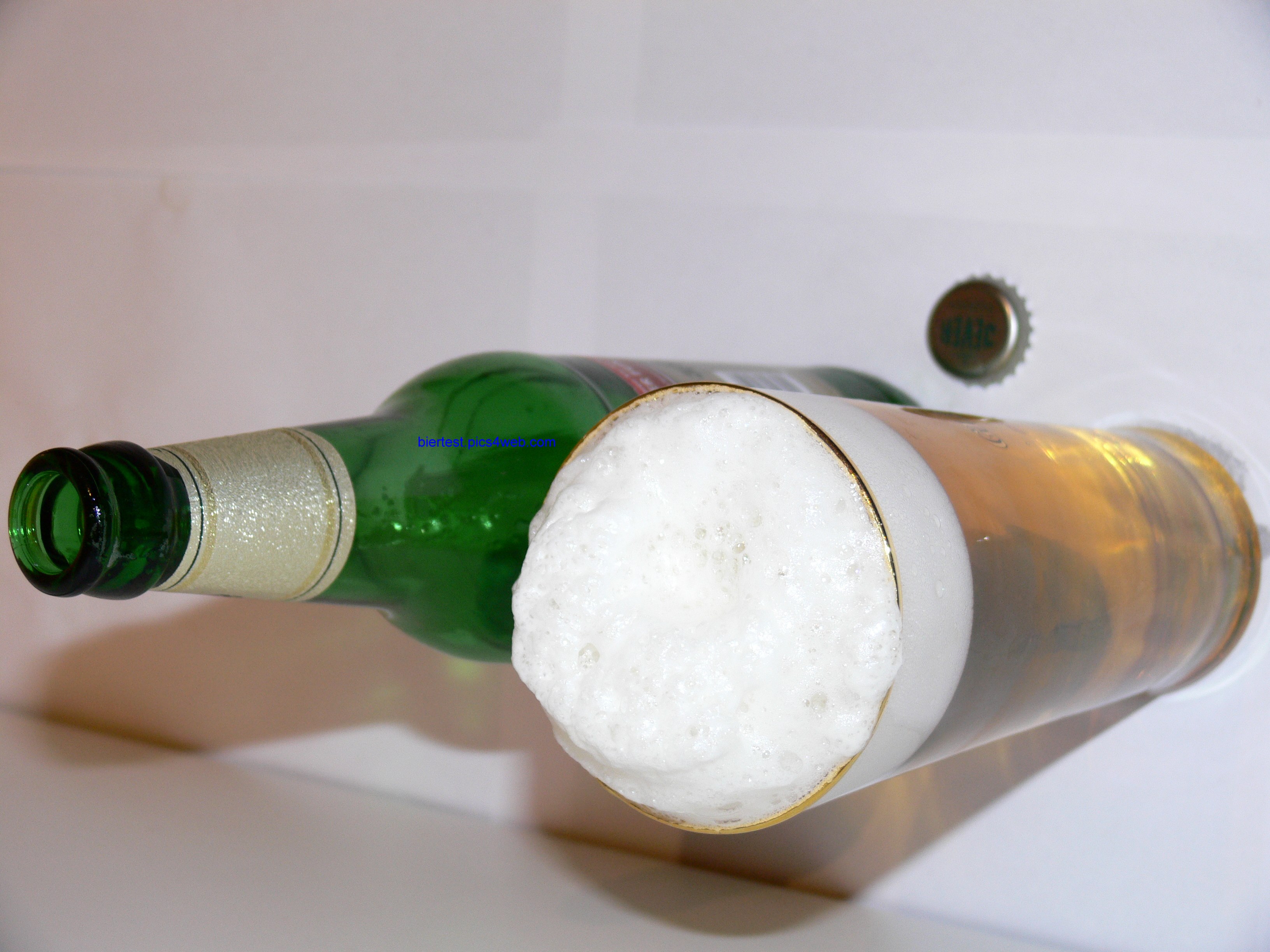 Geruch: sehr herb (rieche ich schon von weitem) und getreidig. Der Schaum hat den Hang zum Grobporigen, hält dafür sehr lange. Sehr schön. Sie schwindet auch während des Testens nur langsam, ein wenig bleibt immer übrig. Schwache sichtbare Kohlensäure, sehr langsam aufsteigend - schüttelt man das Pils leicht perlt es jedoch recht doll, aber gemütlich. Farblich jedoch etwas blass gelb.