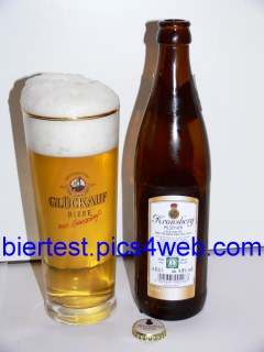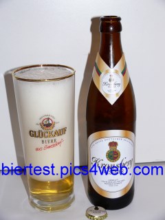 Mal sagen, dachte erst fast, ich hätte ´n Krommi in der Hand und dann das. Weißes Etikett mit hellbraunem Rand, billiger Krone und schwarzgoldener Schrift. Wieder ein Bräu ohne Brauereiangabe.