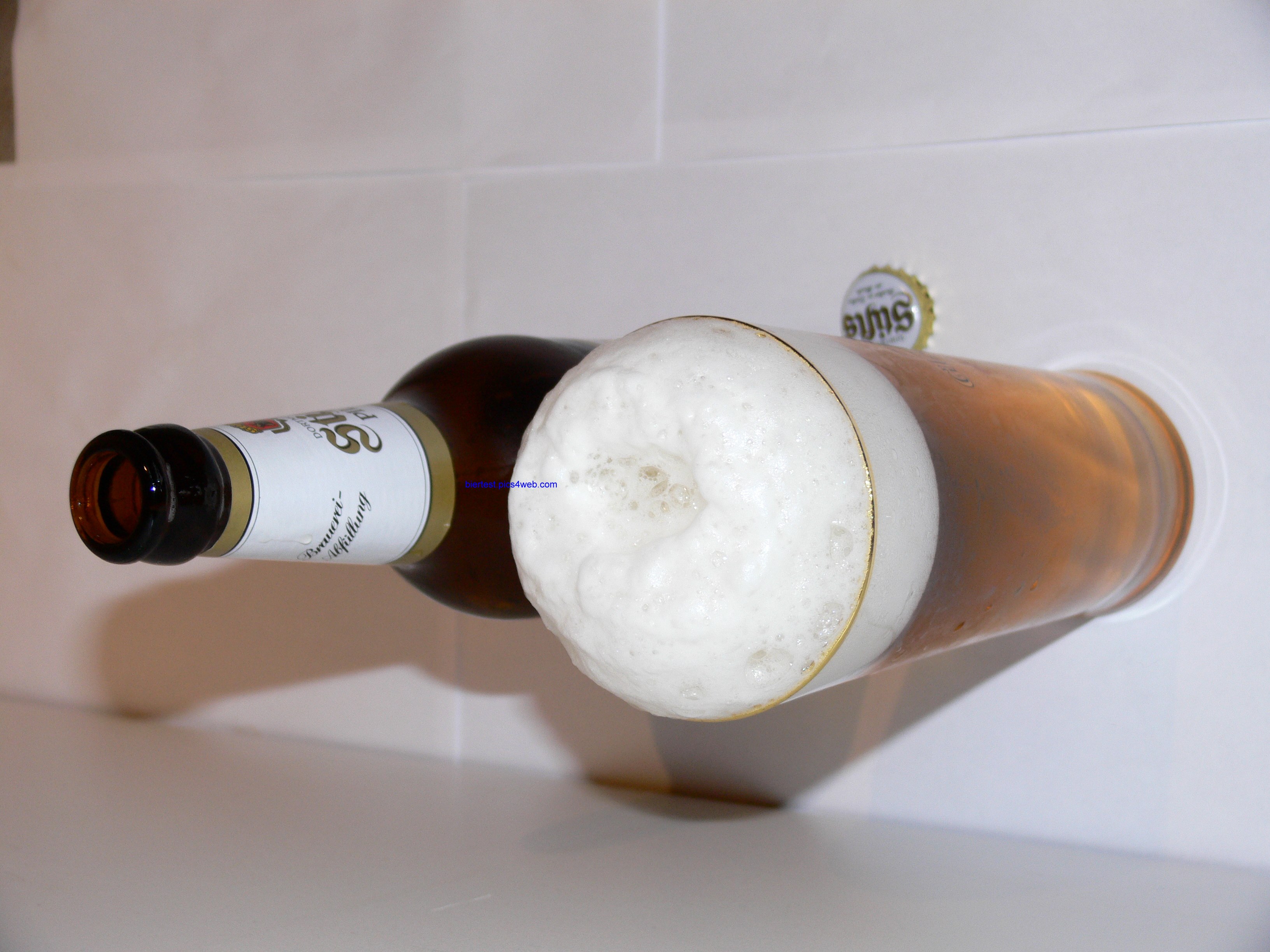 Geruch: getreidig und würzig. Die Farbe des Bieres ist OK, durchschnittliche Pilsfarbe, weder zu hell noch zu dunkel. Schwache Eigenkohlensäure, schnell und langsam aufsteigender Art. Der Schaum hält sich überdurchschnittlich lange im Glas, hat die gewisse Steifigkeit, könnte jedoch noch etwas cremiger und feinporiger sein. Soweit so gut.